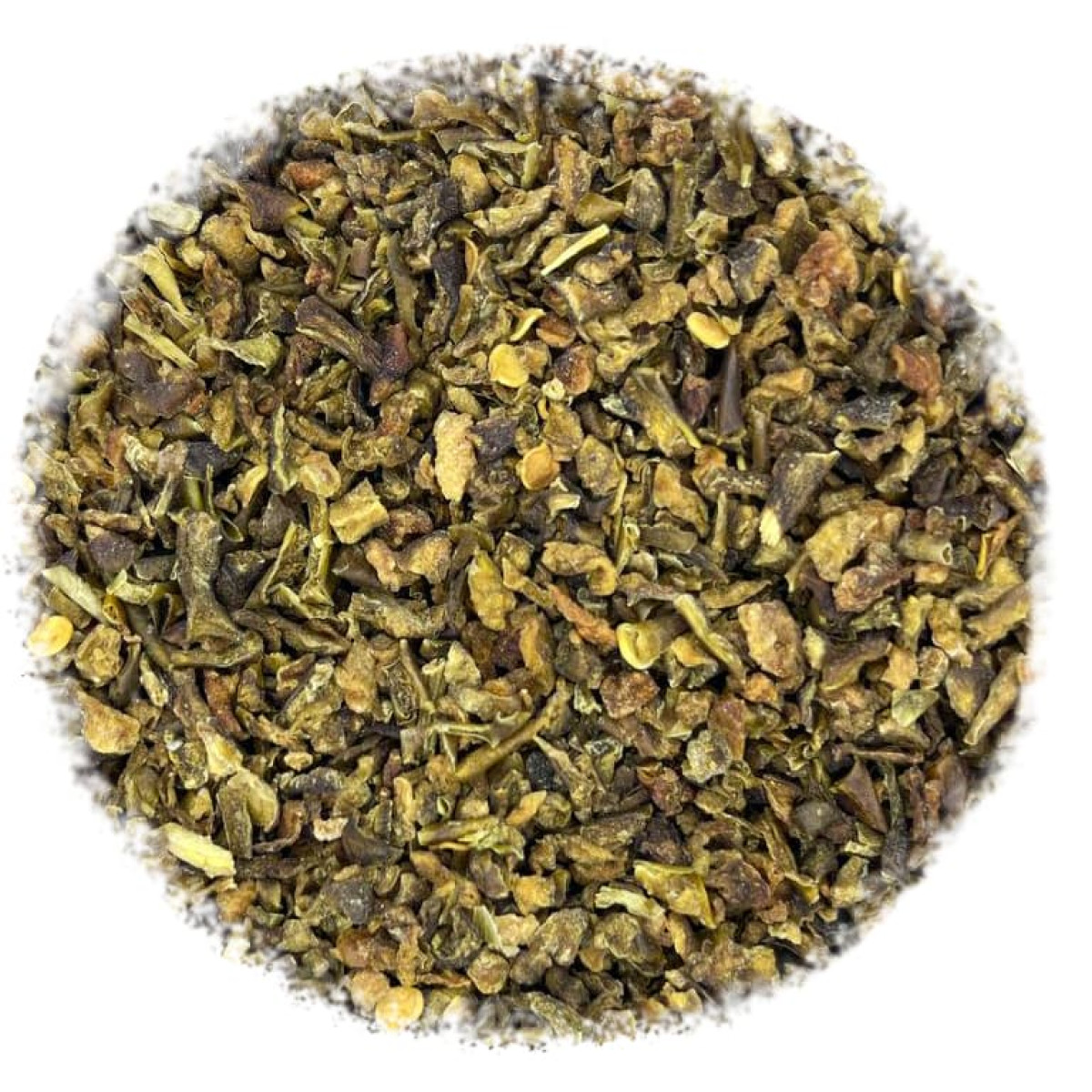 Пластівці зеленої паприки - це висушені та подрібнені плоди зеленого перцю, які зберігають свій яскравий аромат і колір. Походить ця спеція з Центральної та Південної Америки, але широко використовується у європейській та азійській кухнях. Цікаво, що навіть невелика щіпка зелених пластівців здатна надати страві свіжий, трохи гоструватий смак і неймовірний зелений відтінок.